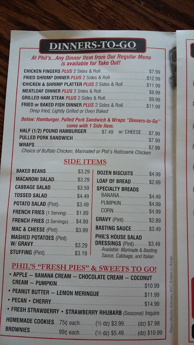 Phil's Chicken House Menu